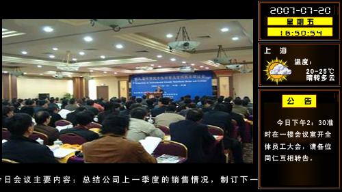 天创科林会议信息发布系统是种通过数字化音、视频多媒体处理,实现远程多点分布式播放和集中管理控制的系统。该系统可以在不同的显示终端同时播放同或不同的多媒体节目和信息,可定制播放内容和播放时间,远程或定时开关机,终端即插即用、免调试、免维护。所以它是目前应用比较广的操作简单方便的多媒体播放系统。?