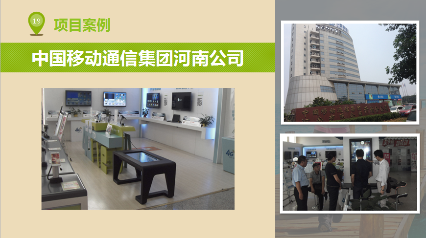 天创科林智慧体验营业厅系统是针对移动、联通、电信等营业大厅客户排队时间长、业务办理效率低、信息宣传力度差等问题专业研发的。通过触摸屏体机、触摸茶几、数字海报、纳米互动橱窗、手机电子展柜等设备,实现营业厅24小时全天候业务办理、拟物化手机销售、智能交互化信息查询等,减少了营业厅业务人员业务办理压力,提高了业务办理效率,让客户享受到现代触摸技术带来的便捷时尚体验的同时,提升企业品牌影响力。