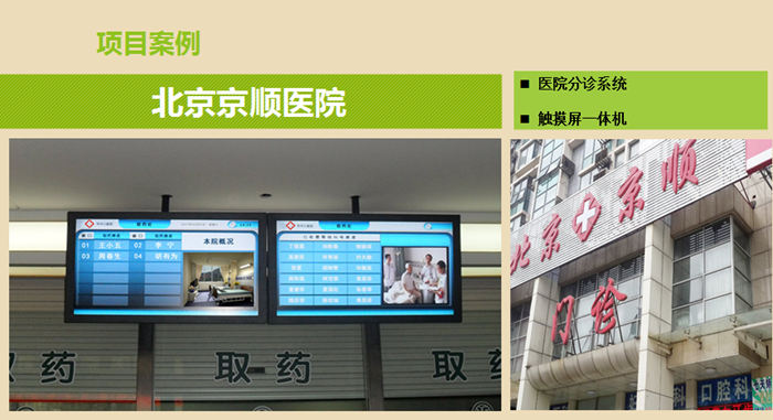天创科林医院触摸屏分诊系统利用计算机信息技术对医院其他多系统(如:HIS、PACS系统)数据库进行了无缝对接?;颊咄ü孟低吵丝梢粤私庖皆旱幕拘畔⒑途驼锪鞒痰瘸9娌檠钅客?,可以查询住院费用明细、专家挂号信息、建立电子病历的患者还可以查询既往病历等数据库信息。 天创科林医院自助终端体机可实现患者自助取单、打印化验单等功能,减轻医务工作负担,提高医疗工作效率。