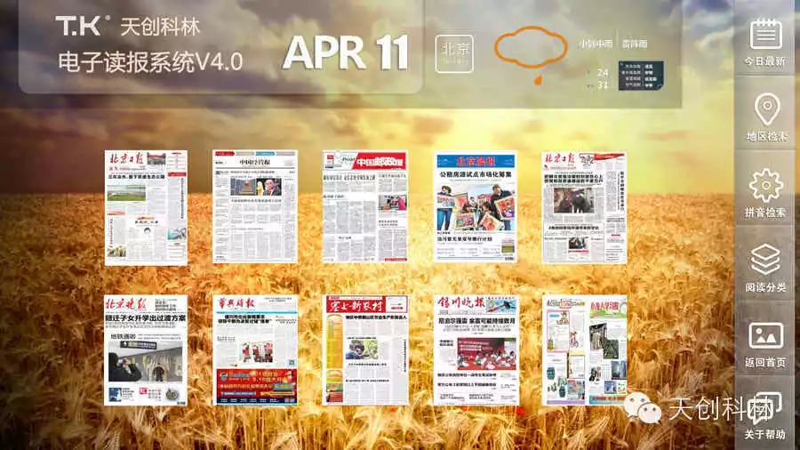 悦点触摸屏电子读报系统设计时尚、操作便捷、维护方便,是、企事业单位、图书馆、科研院所、院校、报社、社区等查阅报纸、期刊等资源的利器,时尚的阅读交互方式,让读者享受科技“悦读”新生活。