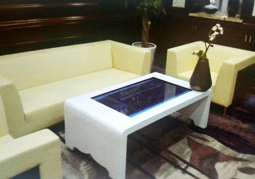 智能触控茶几应用在营业厅,特别是VIP室,客户闲时互动和产品讲解。增加营业厅的趣味性。触控茶几采用纯平面外观设计,外观新颖别致,采用LG液晶显示屏,电容多点触控。机身材质:表面采用钢化玻璃电容屏,机身可是木质或钣金材质