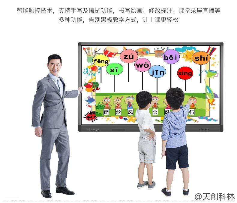 近年来,触摸屏技术在飞速的发展。人在生活中可应用触摸屏体机的场所越来越多。触摸屏体机的尺寸有许多,价格也不同。那么65寸教学触摸体机价格是多少呢?般壁挂的,低配的,13000元起,具体根据您的配置要求来定,可以找销售人员咨询价格。如果是经常使用,还是建议您用高配的,特别是教学和开会用的。数据多就选高配。如何挑选呢?在65寸教学触摸体机的选择上,我们可以通过了解其品牌质量、配置参数等做个参考,再结合市场上的价格来选择性价比高的机子。作为专业的触摸体机生产厂家,下面由北京天创科林科技有限公司给大家介绍触摸屏体机的产品特性。